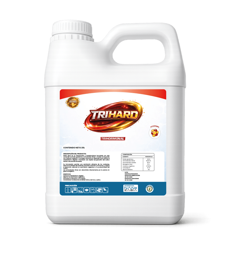 Trihard es un producto PREMIUM, contiene en su formulación una alta concentración generosa de las mejores hormonas, esto le confiere el PODER de incrementar la división celular en los tejidos vegetales (mayor crecimiento de fruto: en tamaño y peso), establecimiento floral, promover el crecimiento de raíces, activar yemas en las plantas, regular el crecimiento excesivo de follaje en cultivos sometidos a altas temperaturas, rompe la dominancia apical y retarda el envejecimiento de las plantas regulando la producción de etileno.